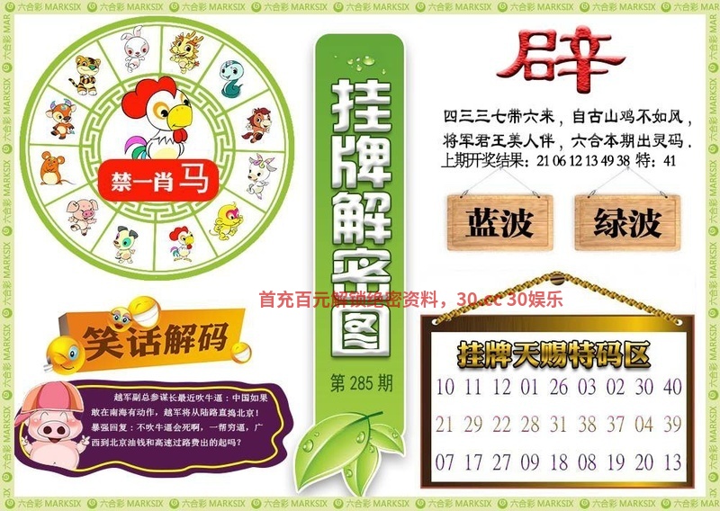 285期:今期生肖三三开,二话不说大行动。金木土中有数拣,守住虎头丢鸡脚。幽谷猛啸气雄高,元帅西征扬军威。猪朋狗友一起来,替人垂泪到天明。